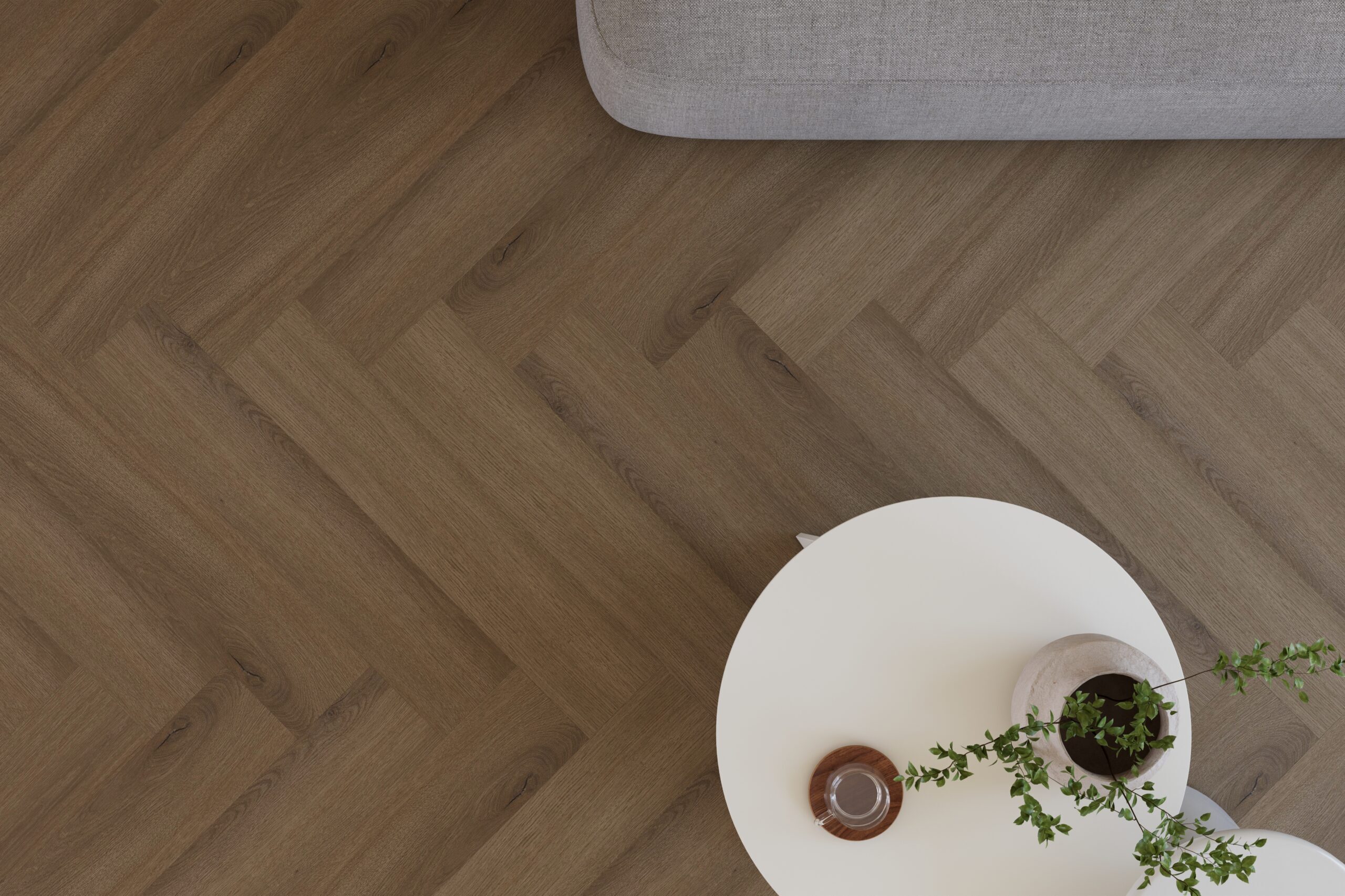 De Castell Ultimate 880 Visgraat 284 Cedar Ash is een stijlvolle plak PVC vloer met een natuurlijke houtlook en een luxe visgraatpatroon. De warme tint Cedar Ash geeft de vloer een rustige, sfeervolle uitstraling die goed past in zowel moderne als klassieke interieurs.