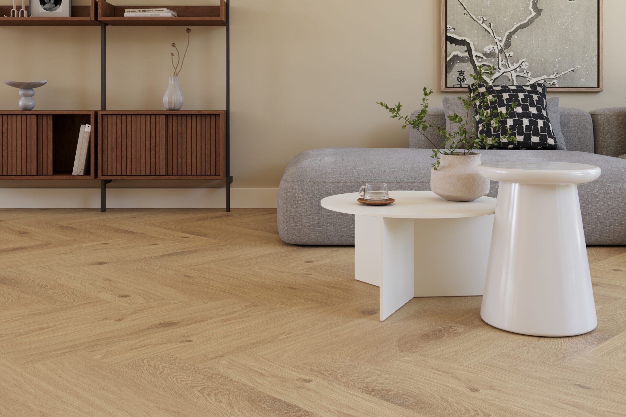 Deze visgraatvloer is geschikt voor vloerverwarming en vloerkoeling en heeft een lage warmteweerstand van 0,02 m² K/W. Daardoor combineer je een luxe uitstraling met comfortabel en efficiënt wonen. Bekijk ook andere visgraat PVC vloeren binnen ons assortiment.